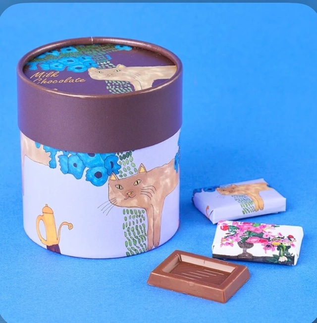 Artisan アートBOXフェアトレードミルクチョコレート青い花と猫とじょうろ