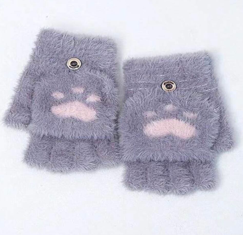 寒い時はボタンをとって指を隠すと、肉球が現れまるで猫の手のように。