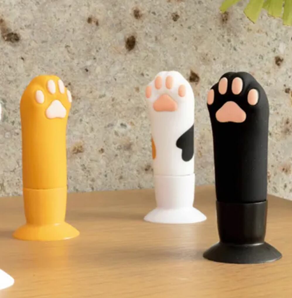 猫の手がニョキっとのびた可愛いハンコカバーです。下部が吸盤になっており、机に吸着させて片手で捺印することができます。