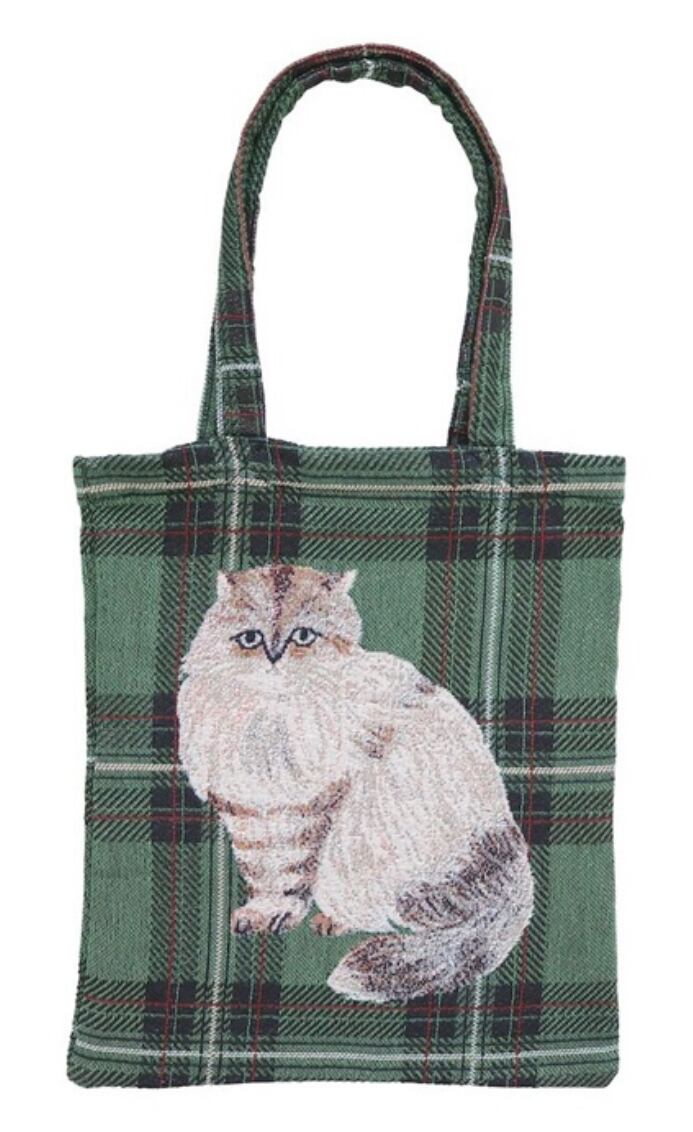 松尾ミユキさんが描くネコたちがデザインされたゴブラン織りのトートバッグ。