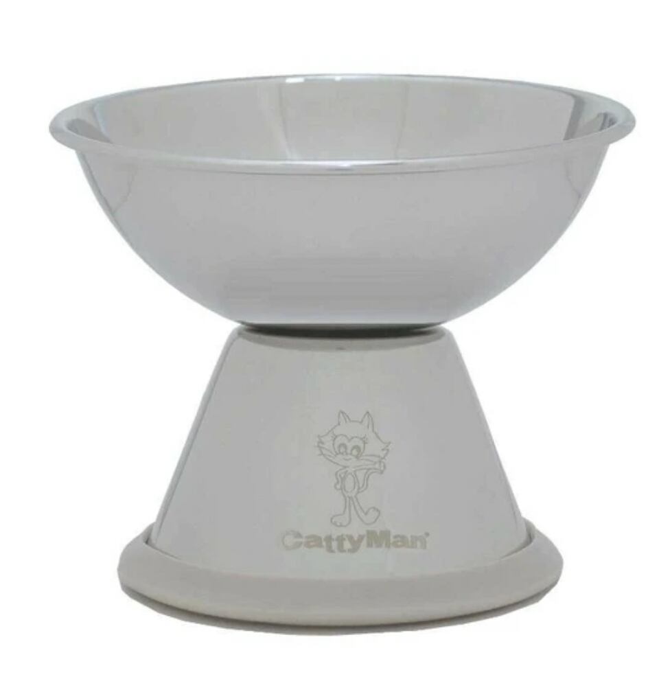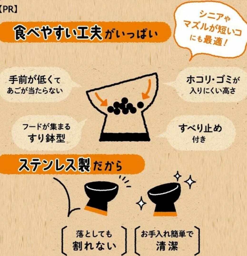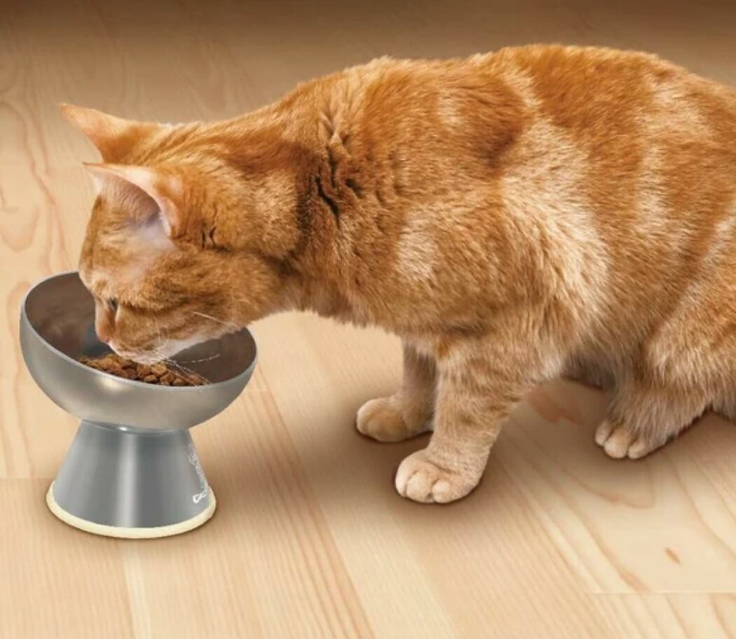ステンレス製だから割れない!洗いやすい!キズがつきにくくて衛生的な猫用の背高食器です。器の位置が高いので、猫ちゃんにとって負担の少ない体勢でお食事ができます。食器の手前が低く、フードが中央に集まる器形状で食べやすい。専用食器台が不要です。滑り止めゴム付きで滑りにくく、床を傷つけません。シニアやエリザベスカラーをつけた猫ちゃんにもオススメです。