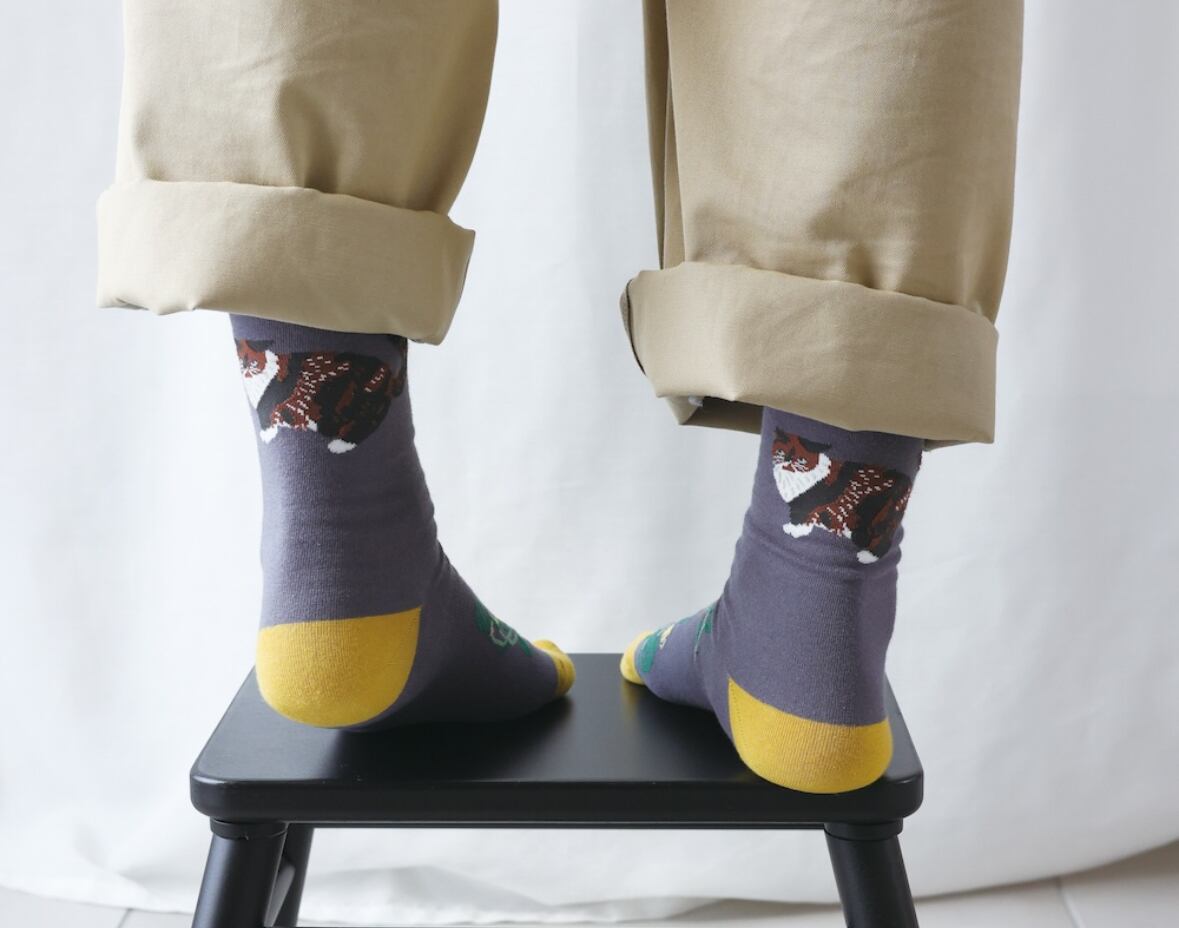 前面の植物はパンプスやバレーシューズを合わせるとちょうどデザインが見える場所に配置。前後で見え方が変わる、遊びこころのあるアイテムです。