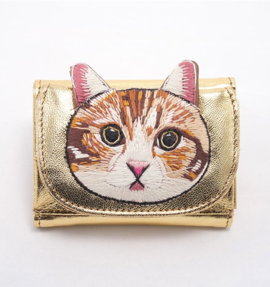 柔らかい羊革に猫の刺繍をしたミニ財布です。