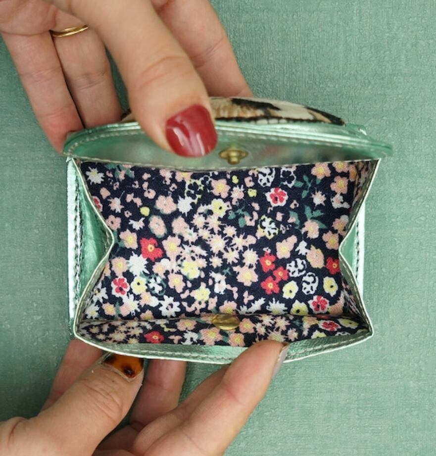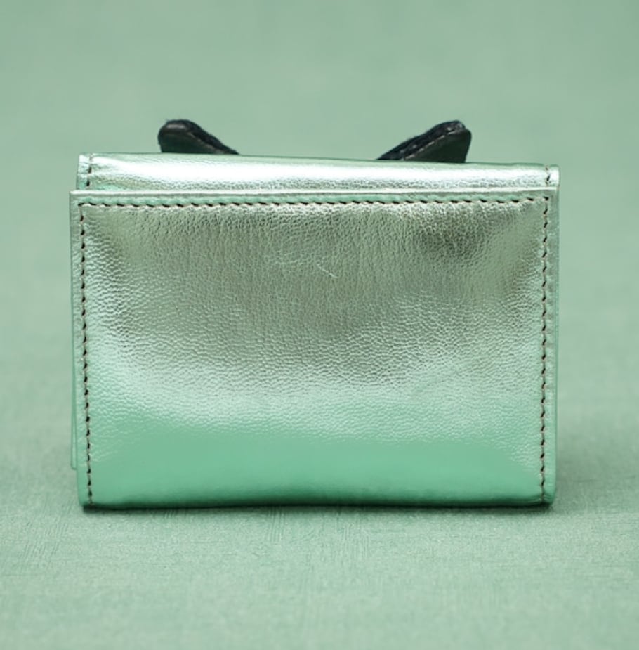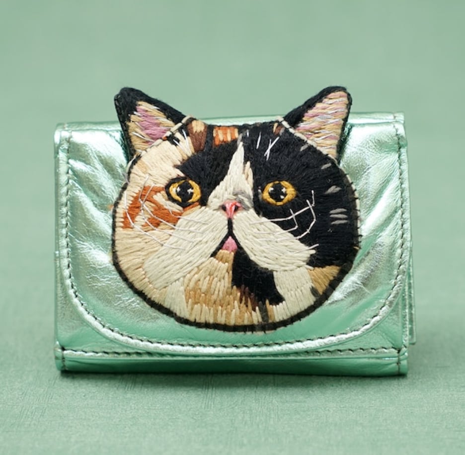 ねこミニ財布 calico cat/Metallic Green
