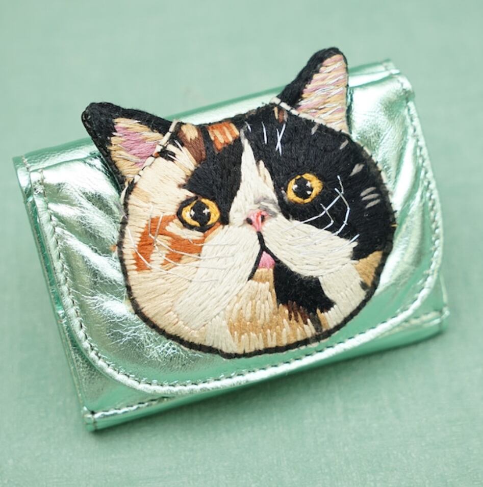 柔らかい羊革に猫の刺繍をしたミニ財布です。