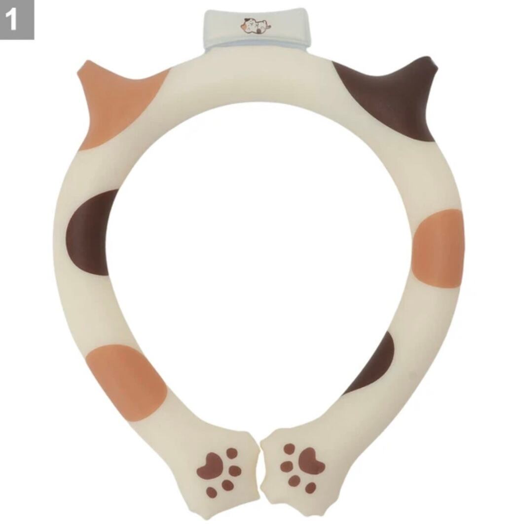 首まわりひんやり♪ふくふくにゃんこの猫耳付きクールリングがリバーシブル仕様で表面はそれぞれのにゃんこ柄&裏面は爽やかなグラデーション柄になっています。