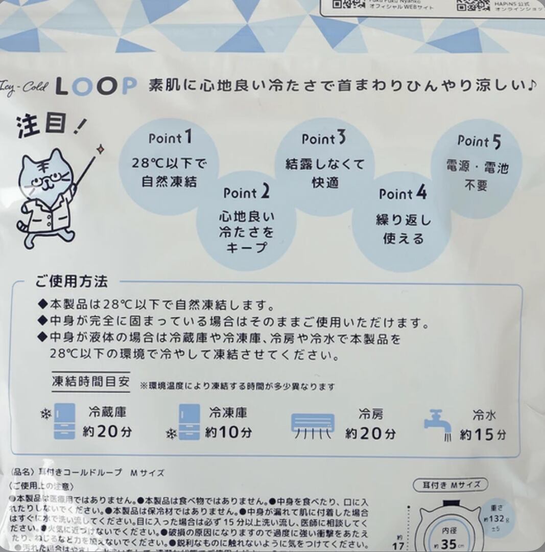 素肌に心地いい冷たさでひんやりと気持ちいい♪28℃以下で凍る水溶化(PCM)ジェル使用で、首元の熱を吸収し心地よくクールダウンする効果があります。