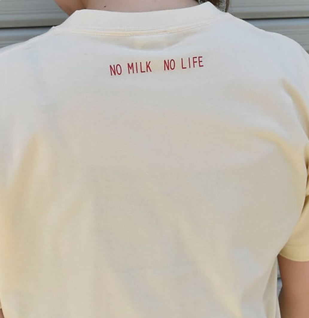 背面の襟下には「NO MILK NO LIFE」のメッセージ入り。