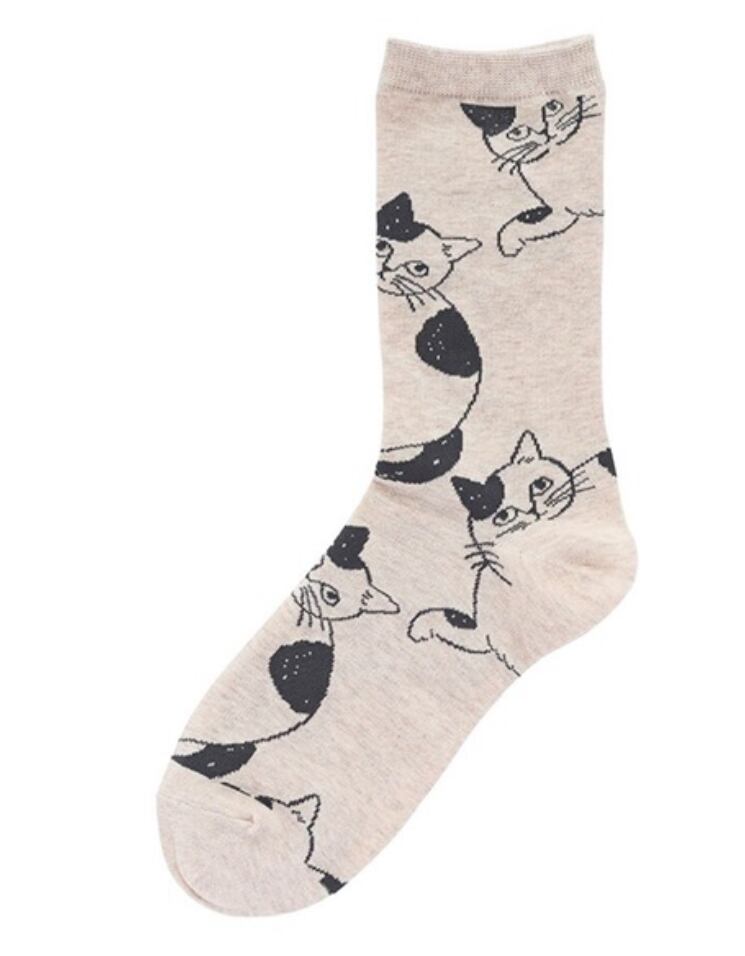 松尾ミユキさんの線画のネコが織られたソックスに、新しいネコたちが登場です。