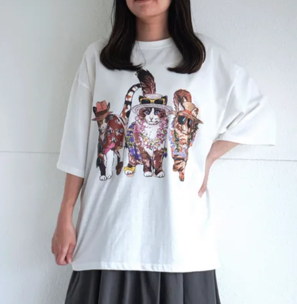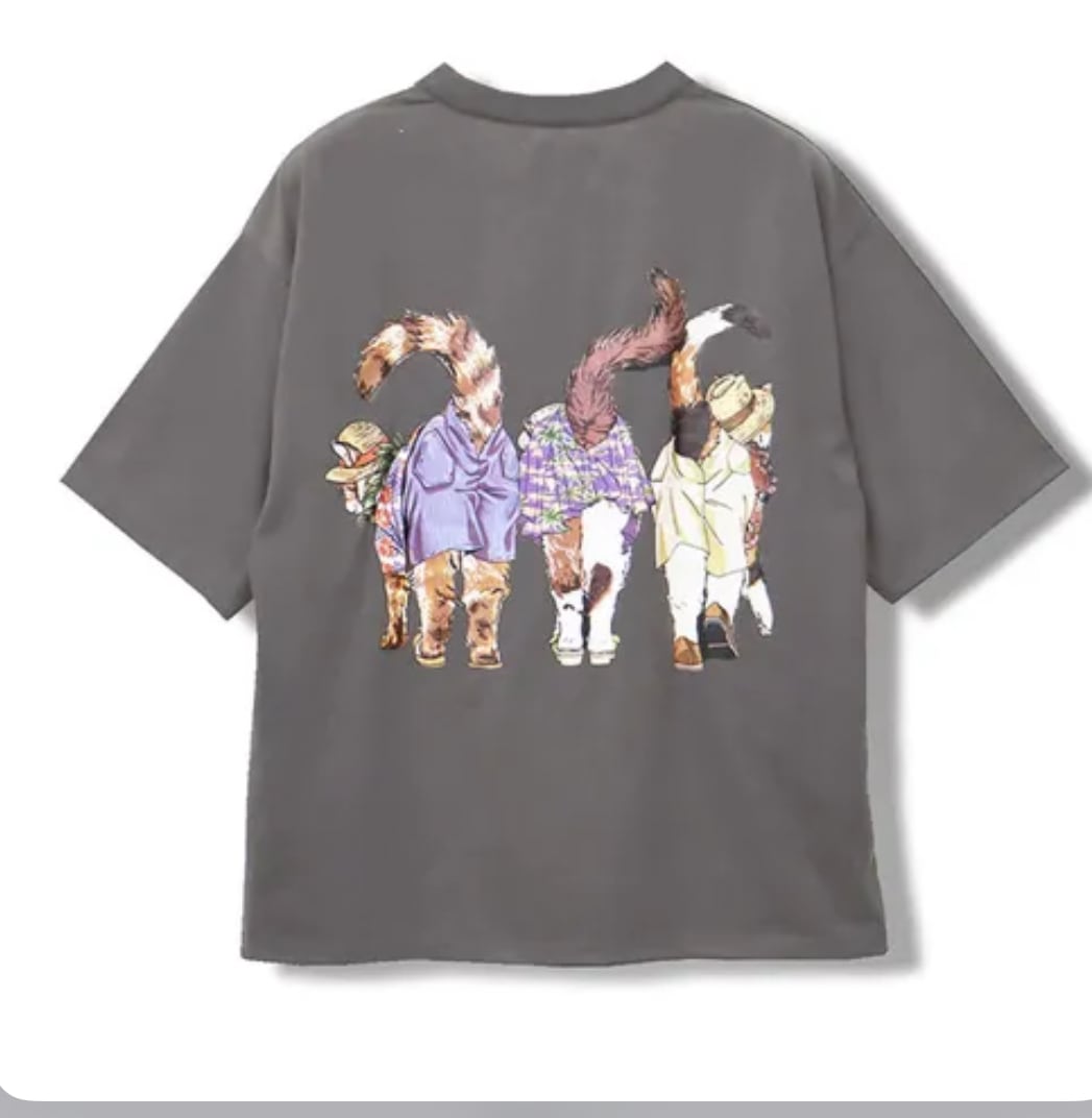 リゾート Animal Village ネコTシャツ グレー
