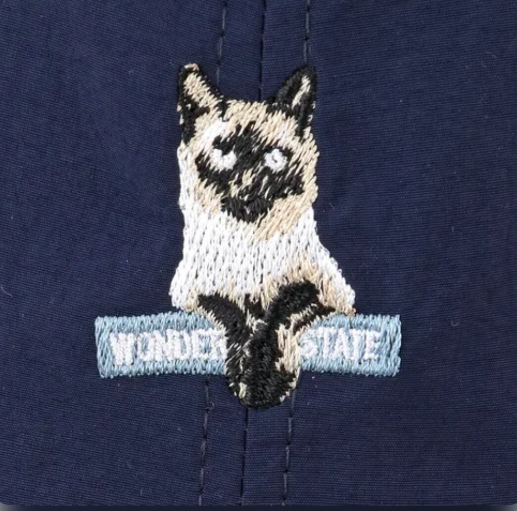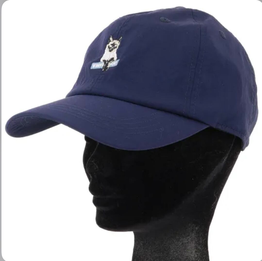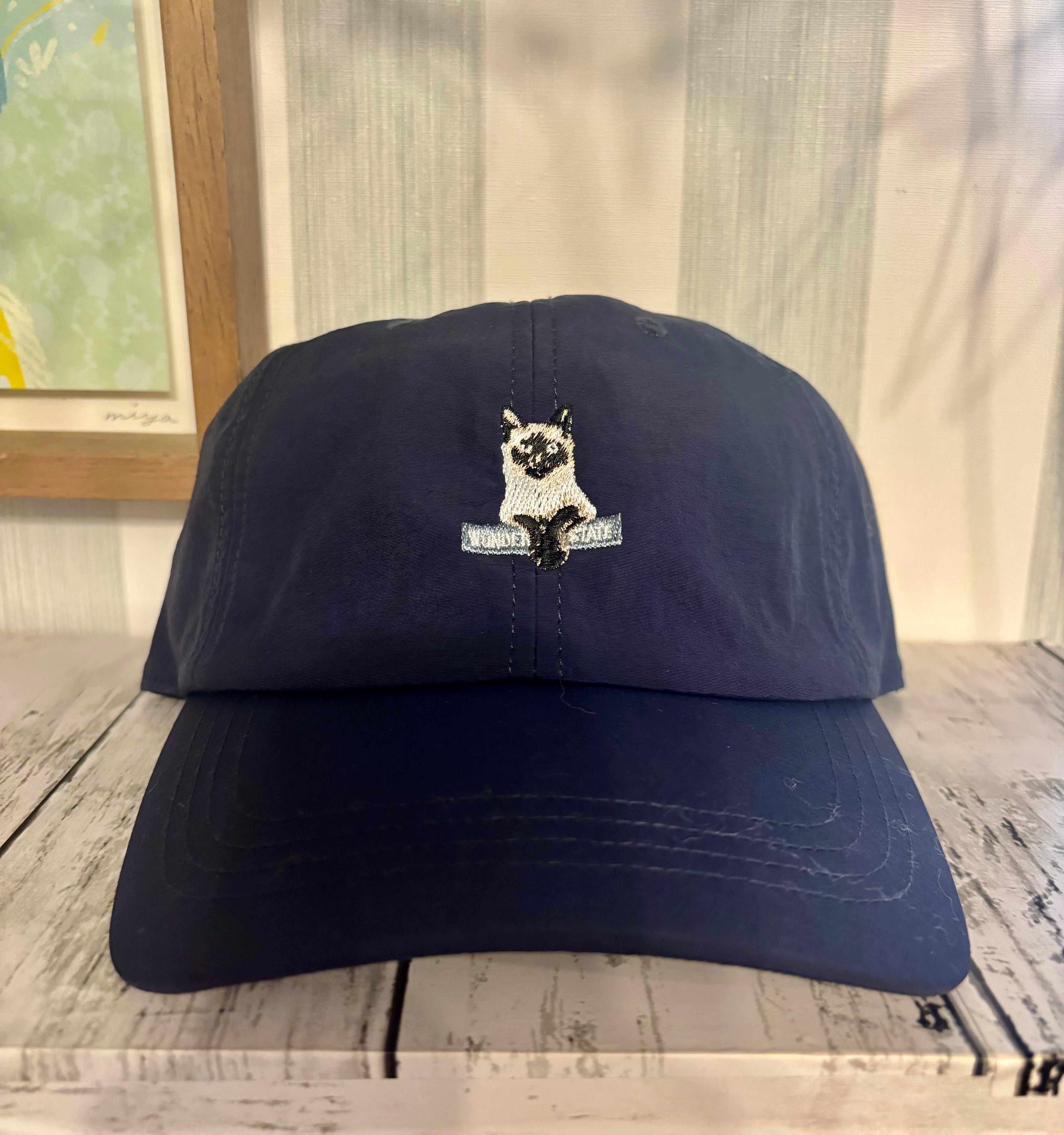 ねこ刺繍シワ加工キャップ ネイビー