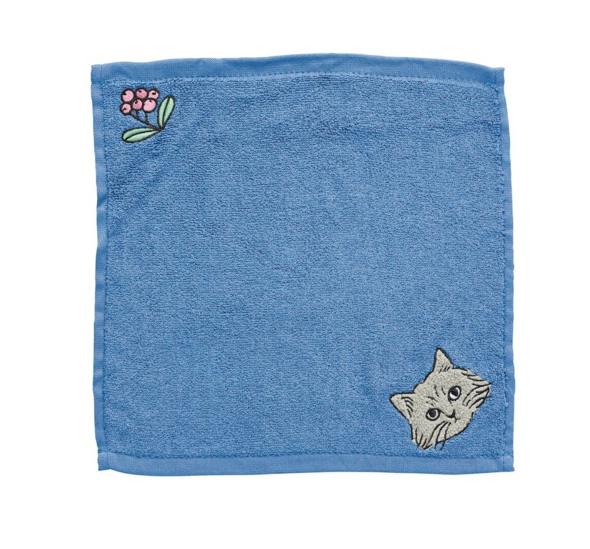 松尾ミユキさんデザインのネコ顔モコモコ刺繍に加え、植物モチーフの刺繍が添えられていて、とても愛らしい仕上がりです。