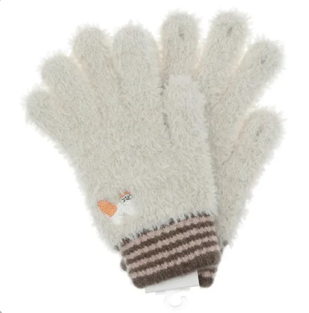 ストレッチ性のあるモフモフあったか素材で愛らしい動物の刺繍入り手袋です。