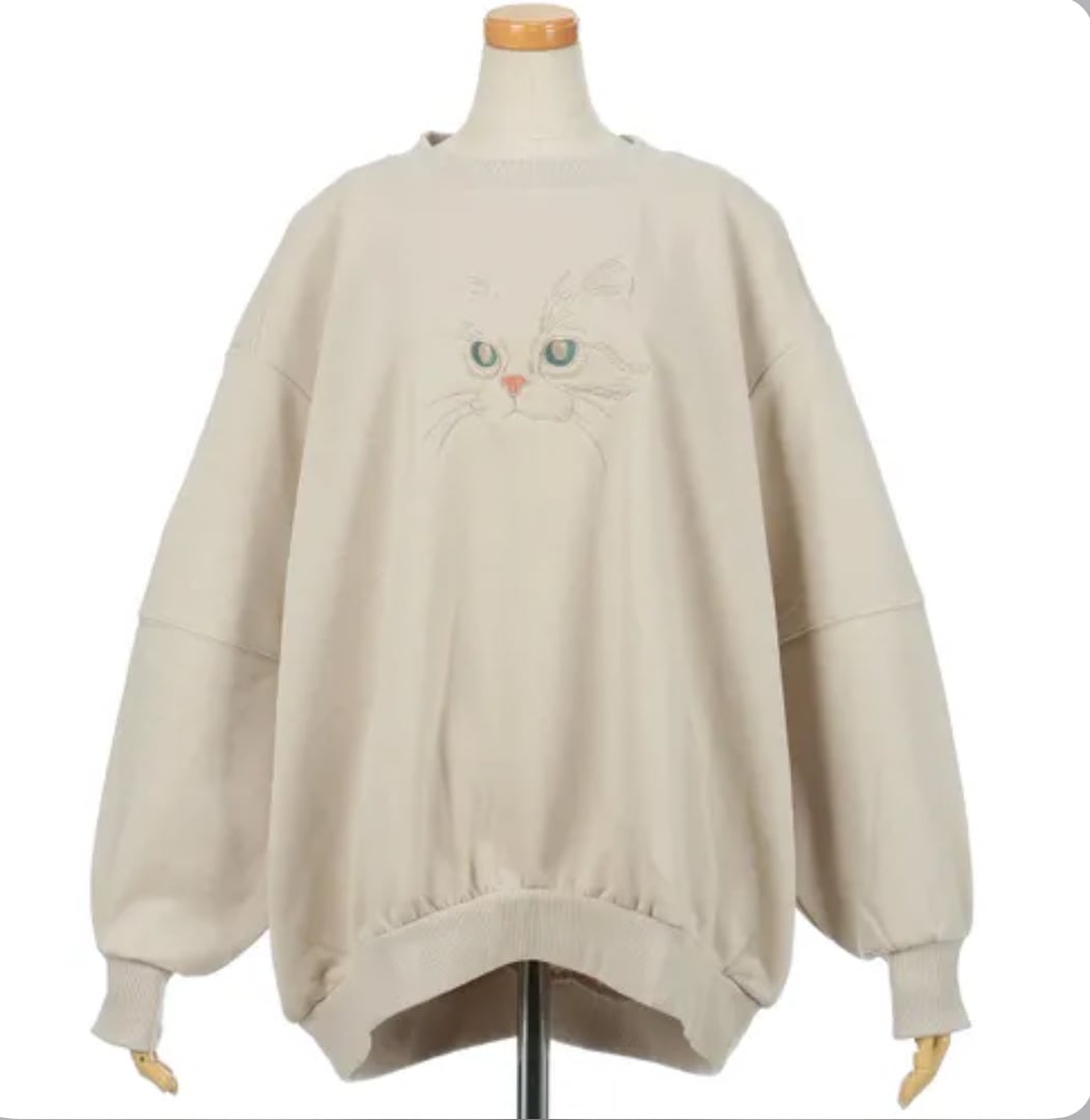 iriey CT裏毛ネコ刺繍PO