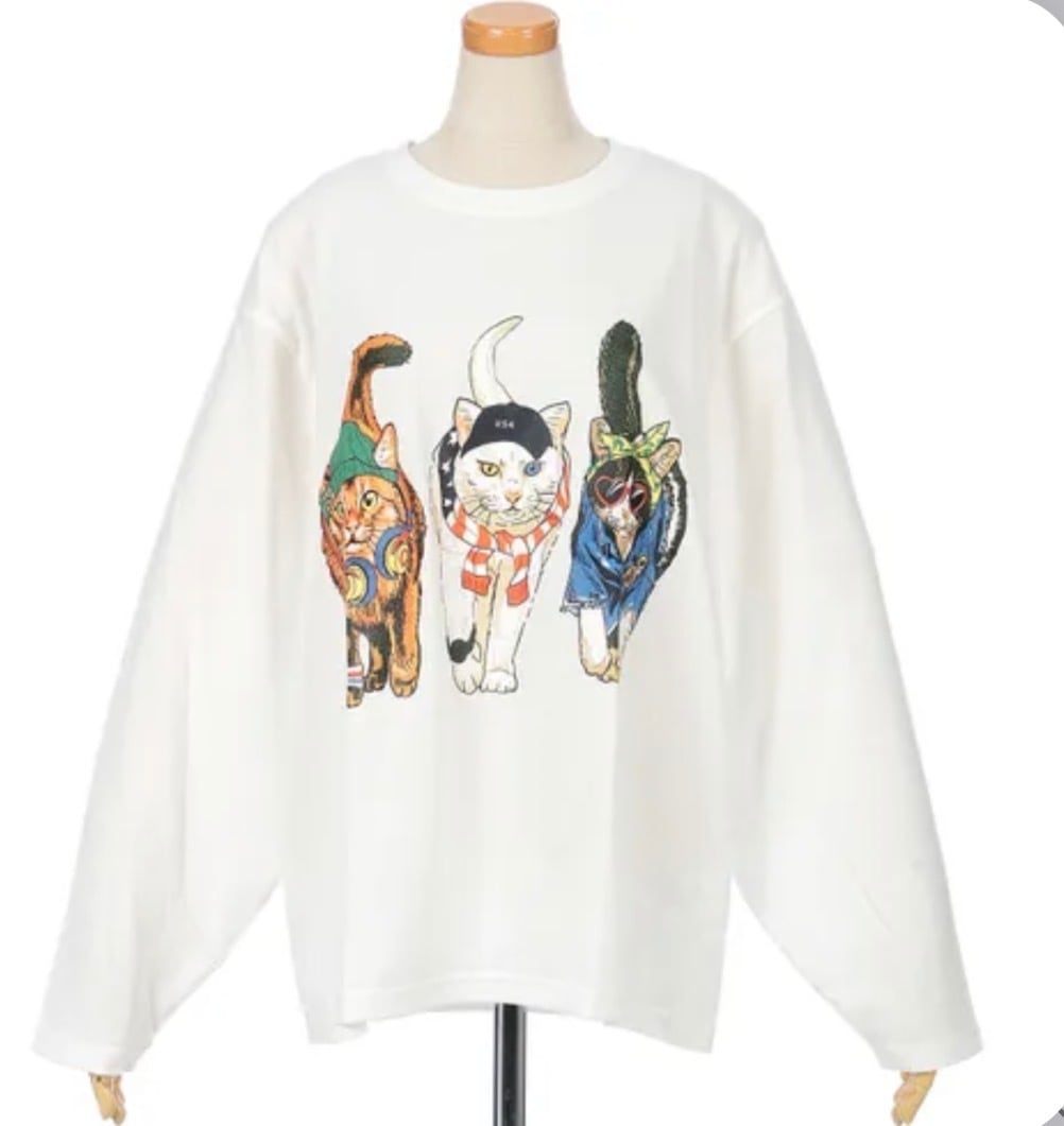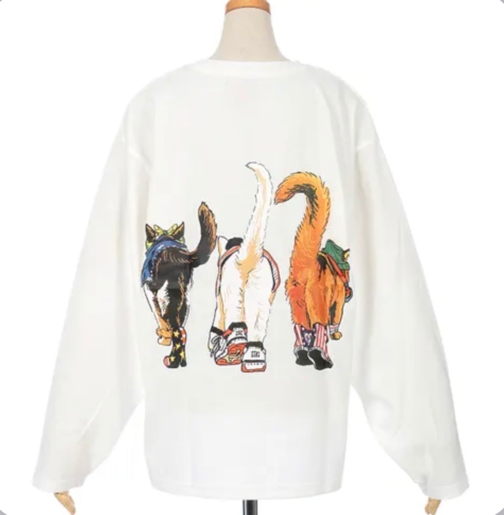 ≪猫好き必見アイテム!!≫前後のプリントどちらも見て欲しい、猫たちがこちらへ向かってくるようなグラフィックがユニークなアイテム。バックスタイルには猫たちの後ろ姿が描かれ、注目されること間違いなし!オーバーサイズに着用できる肩幅と身幅を広めにとったユニセックスサイジングとなります。