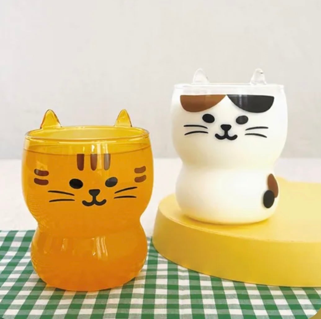 ちょこんとついた小さなミミがキュートなネコのグラスができました。