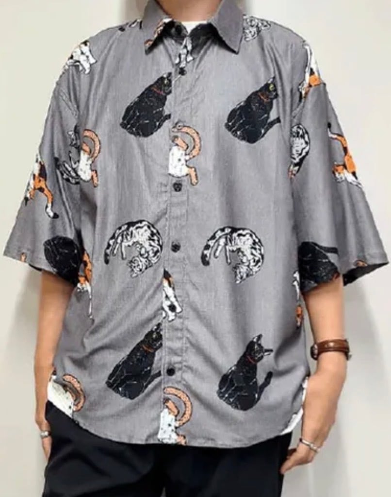 CORISCO Animal Village 猫総柄半袖サッカーシャツ