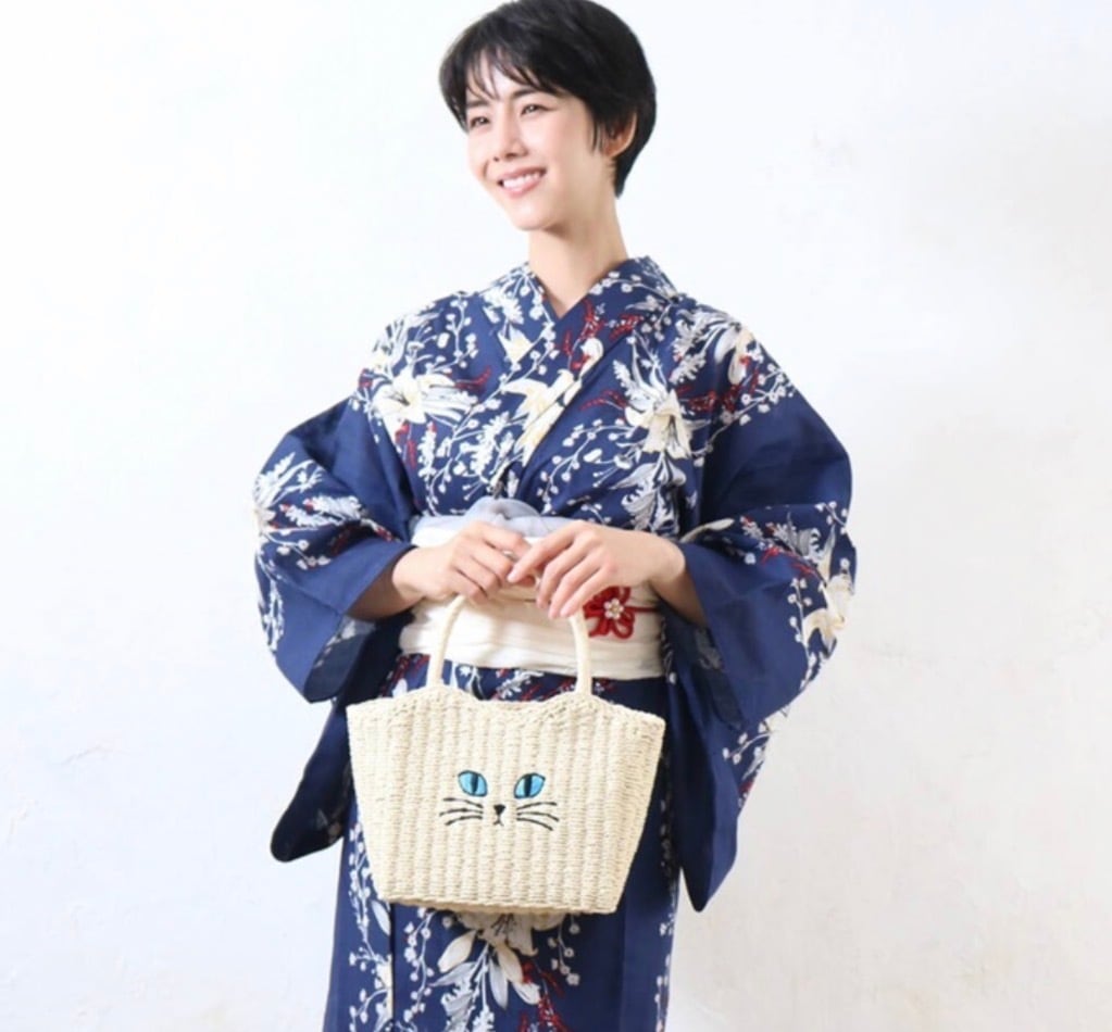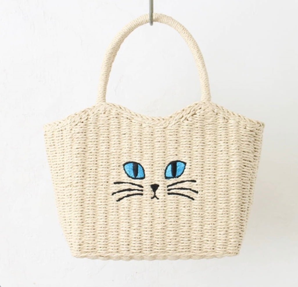 つぶらな瞳のネコがキュートな、雑材のトート✨