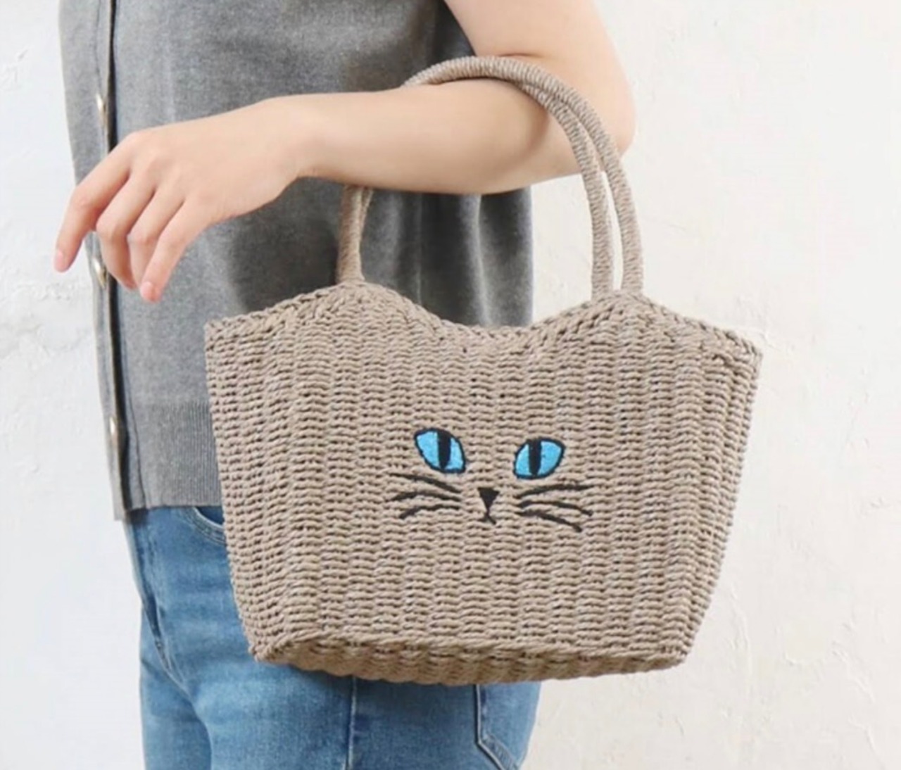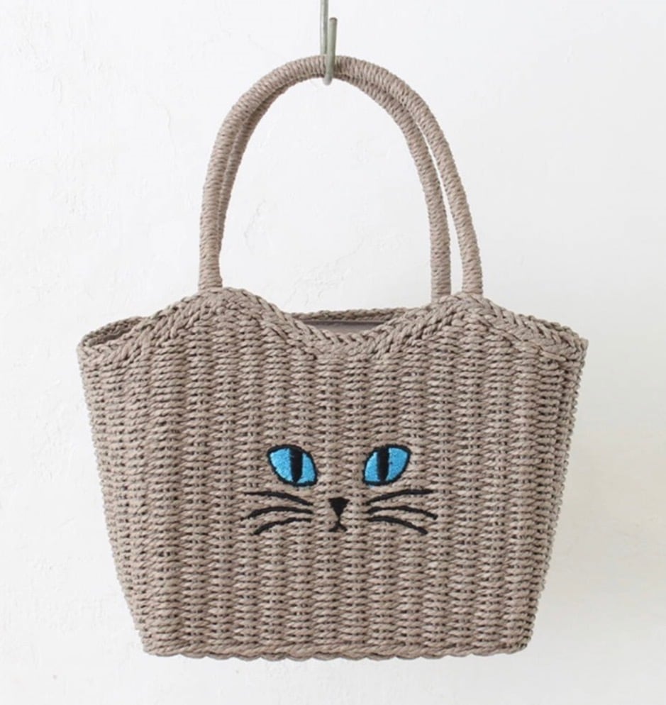 つぶらな瞳のネコがキュートな、雑材のトート✨