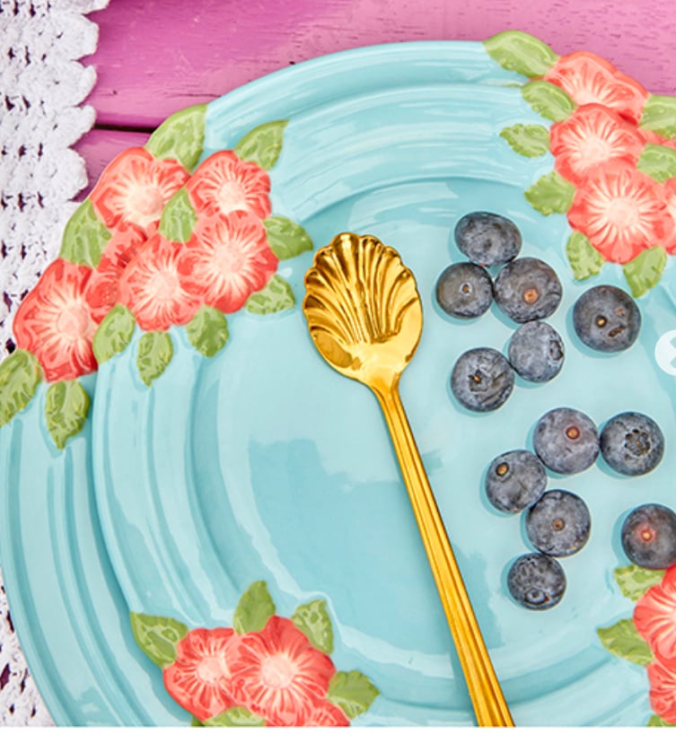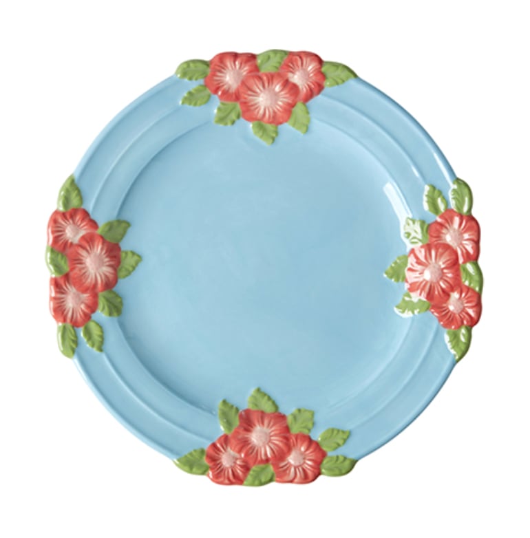 rice Ceramic Lunch Plate /Embossed Flower MINT