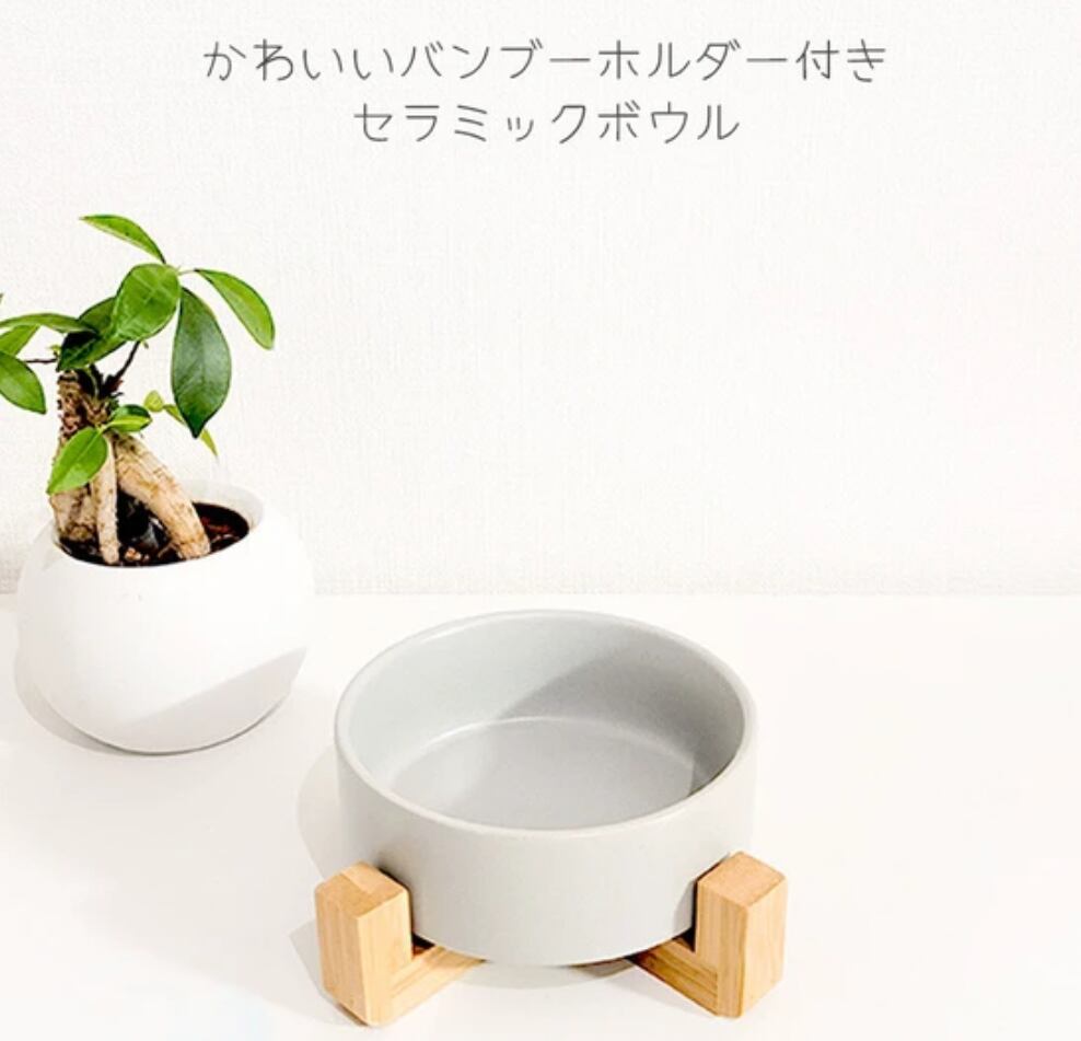 ・かわいいバンブーホルダー付きセラミックボウルのシングルタイプ。