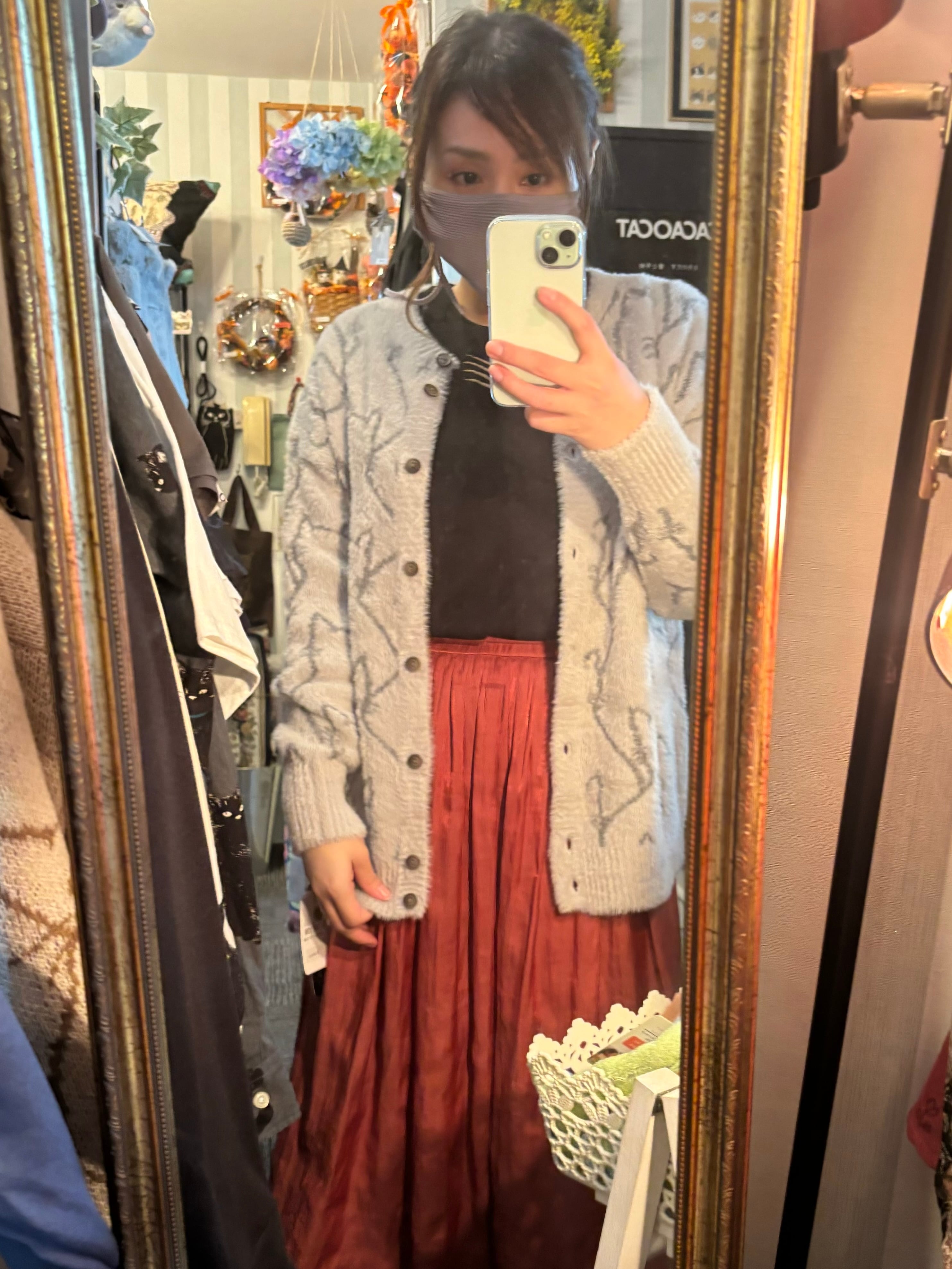 フェザーネコ柄カーディガン ベージュ