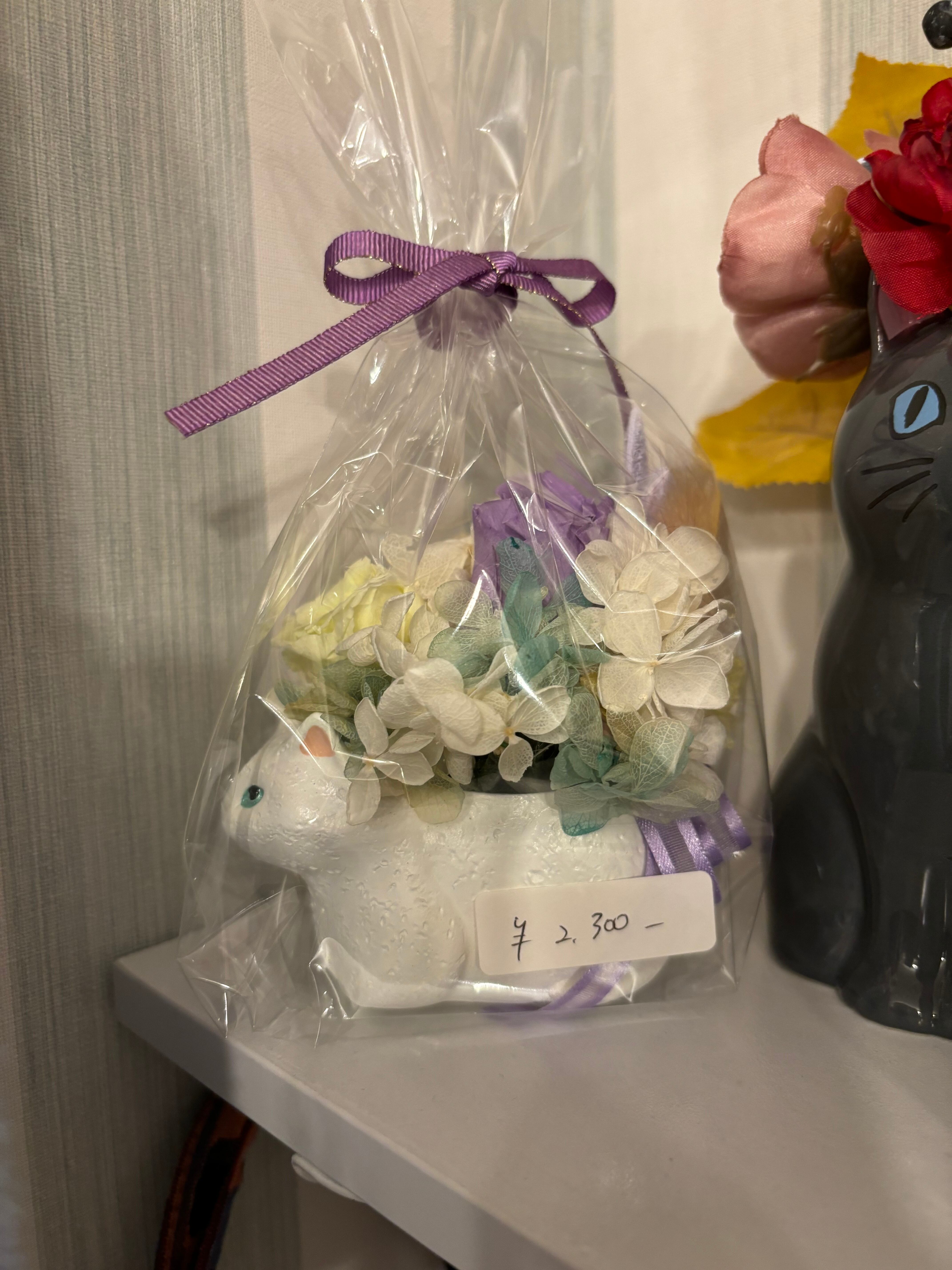プリザードフラワー白猫紫ポットアレンジ ワイズファクトリー