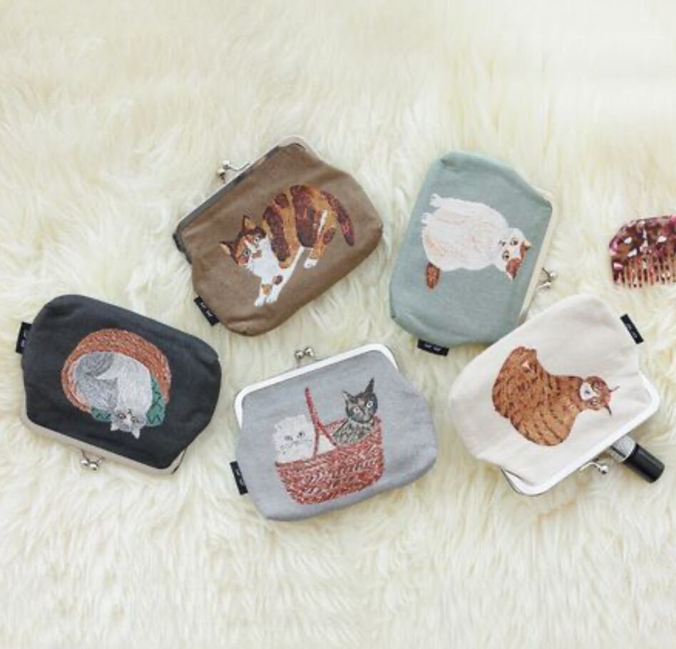 松尾ミユキさんの描くネコ達をがま口ポーチに織り込みました。