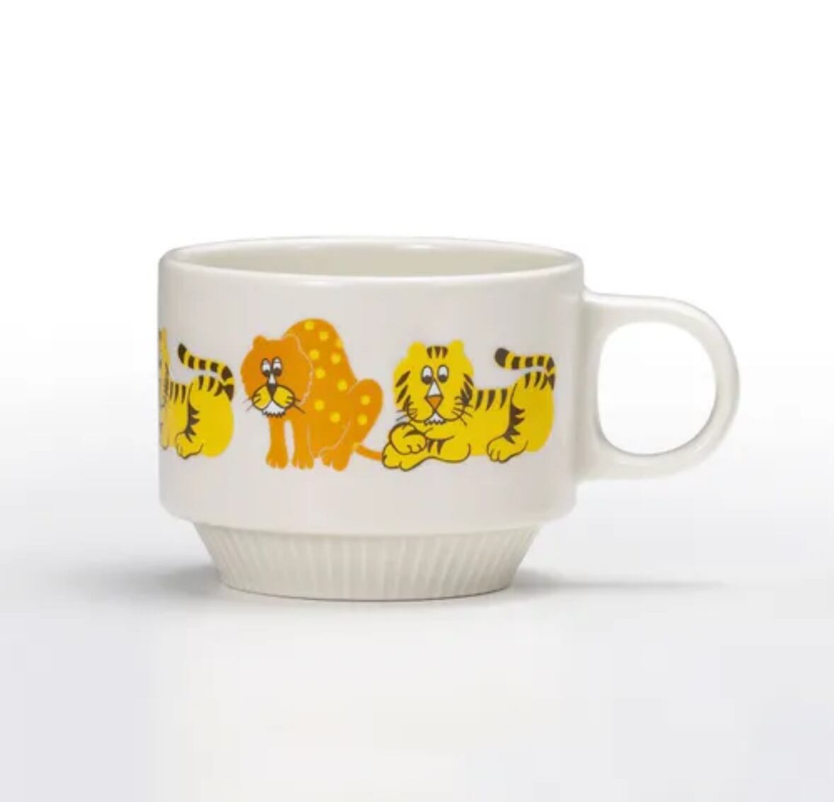 昭和当時のアデリアのガラス製マグカップを、温かい飲み物やお料理にも安心してお使いいただけるよう、陶磁器でリメイクしました。