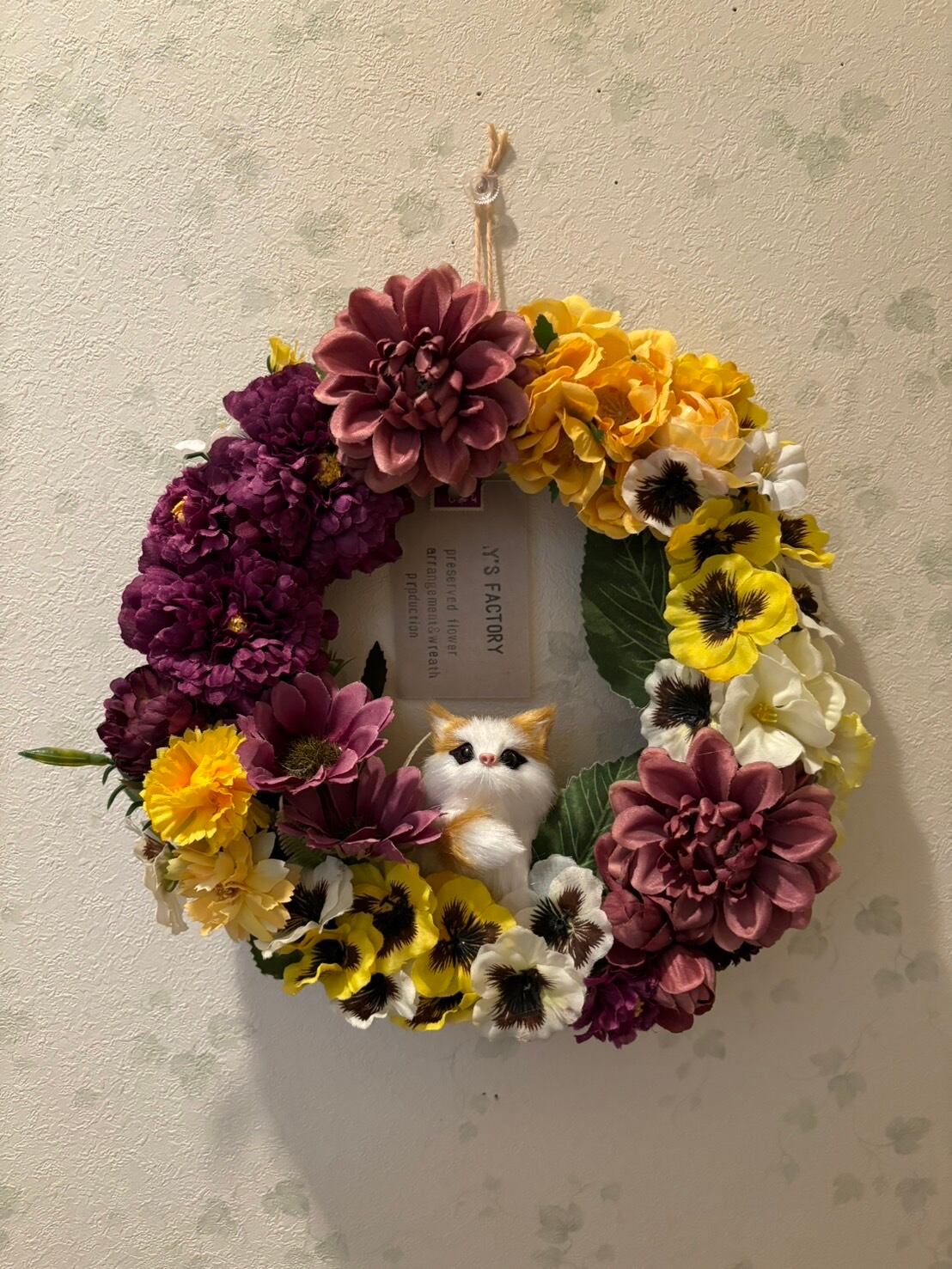 カラフルフラワー猫リース ワイズファクトリー