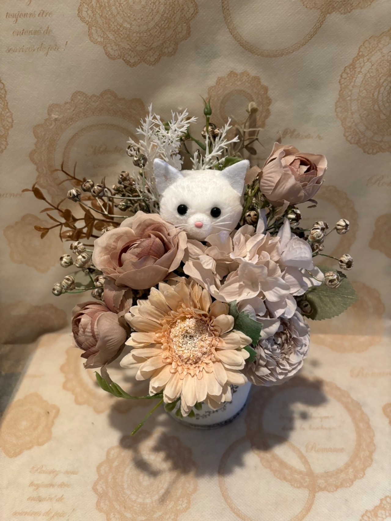 ヴィンテージフラワー白猫 ワイズファクトリー