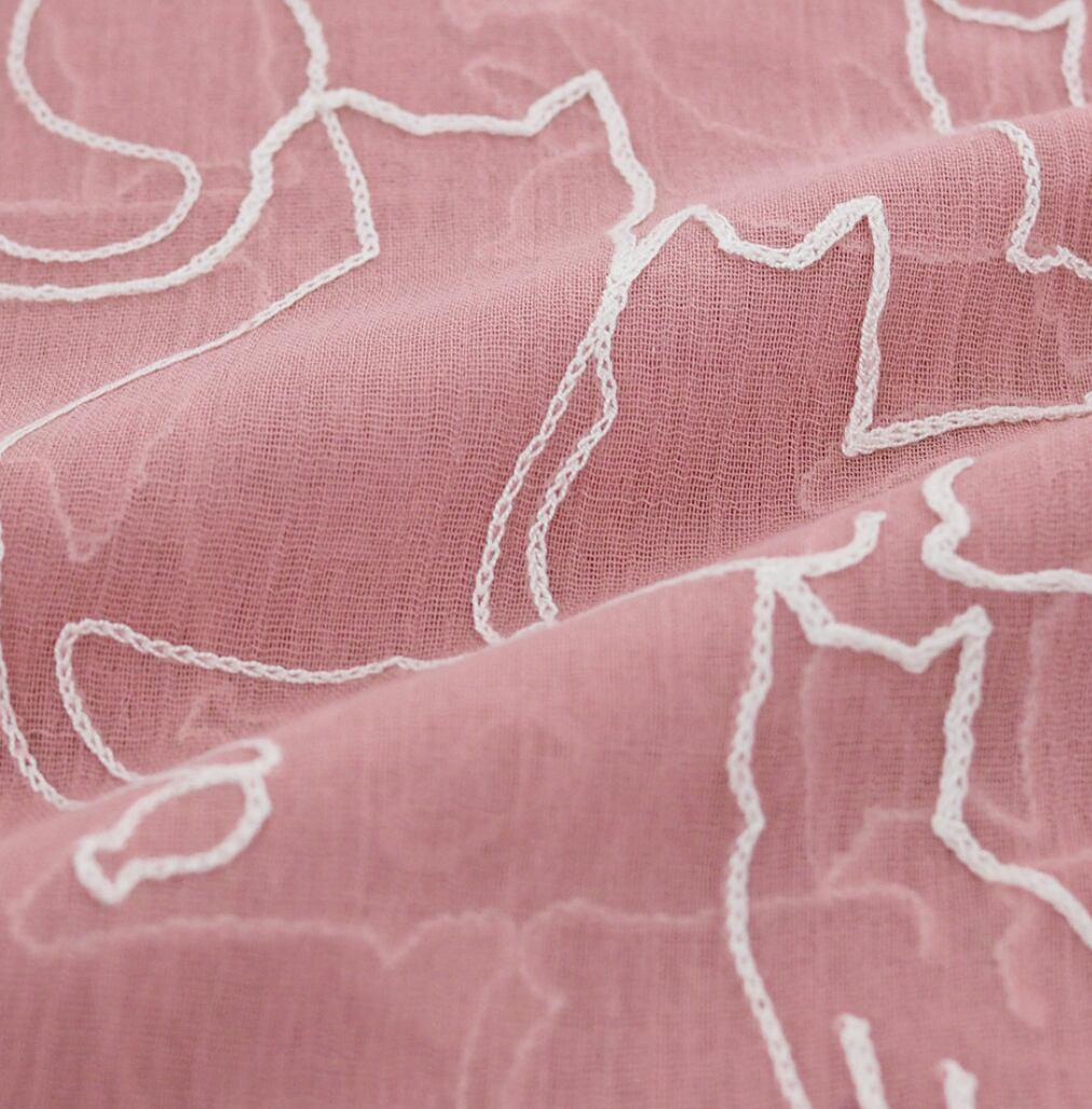 ねこ柄 刺繍 細幅 UVストール ピンク