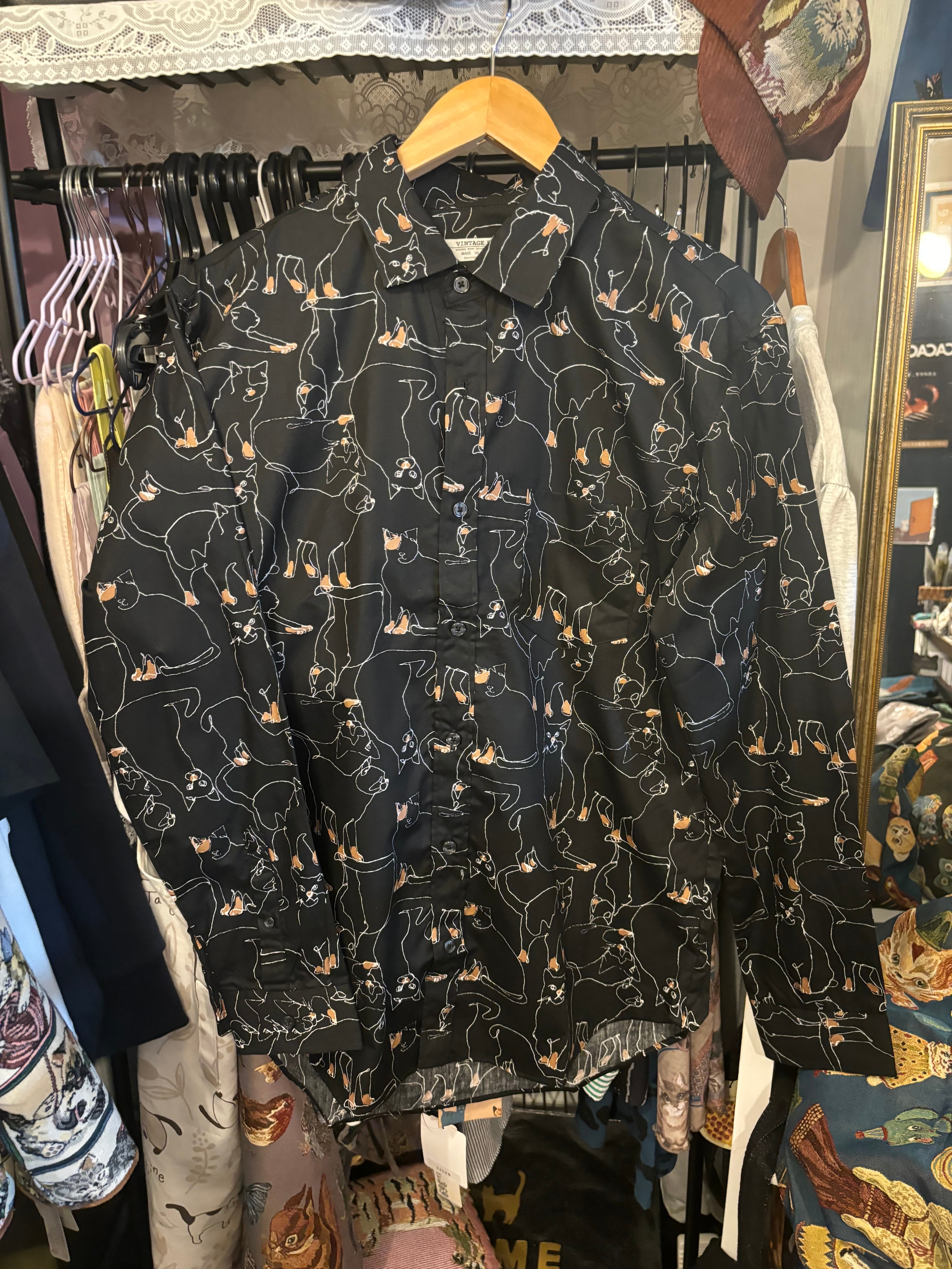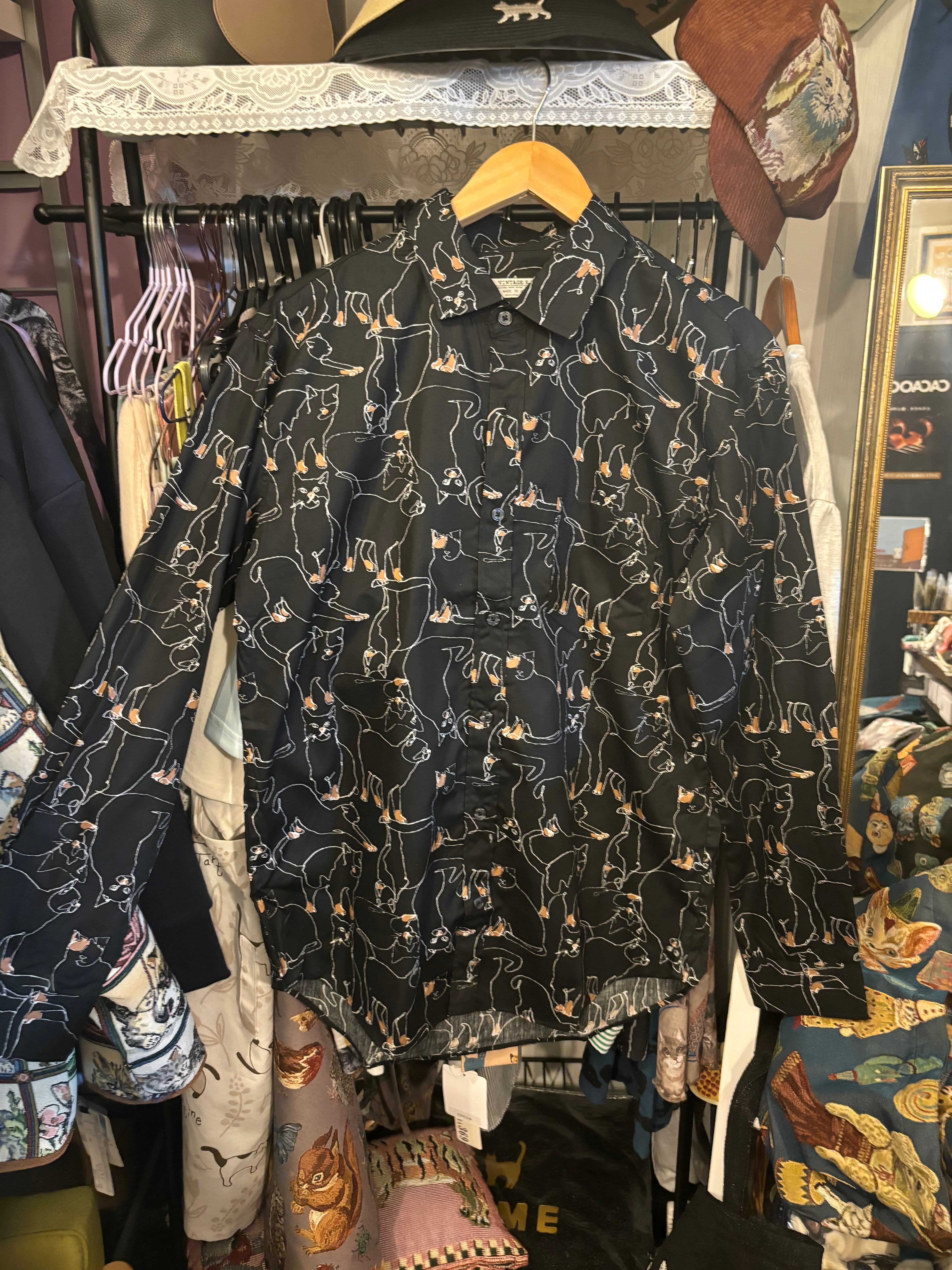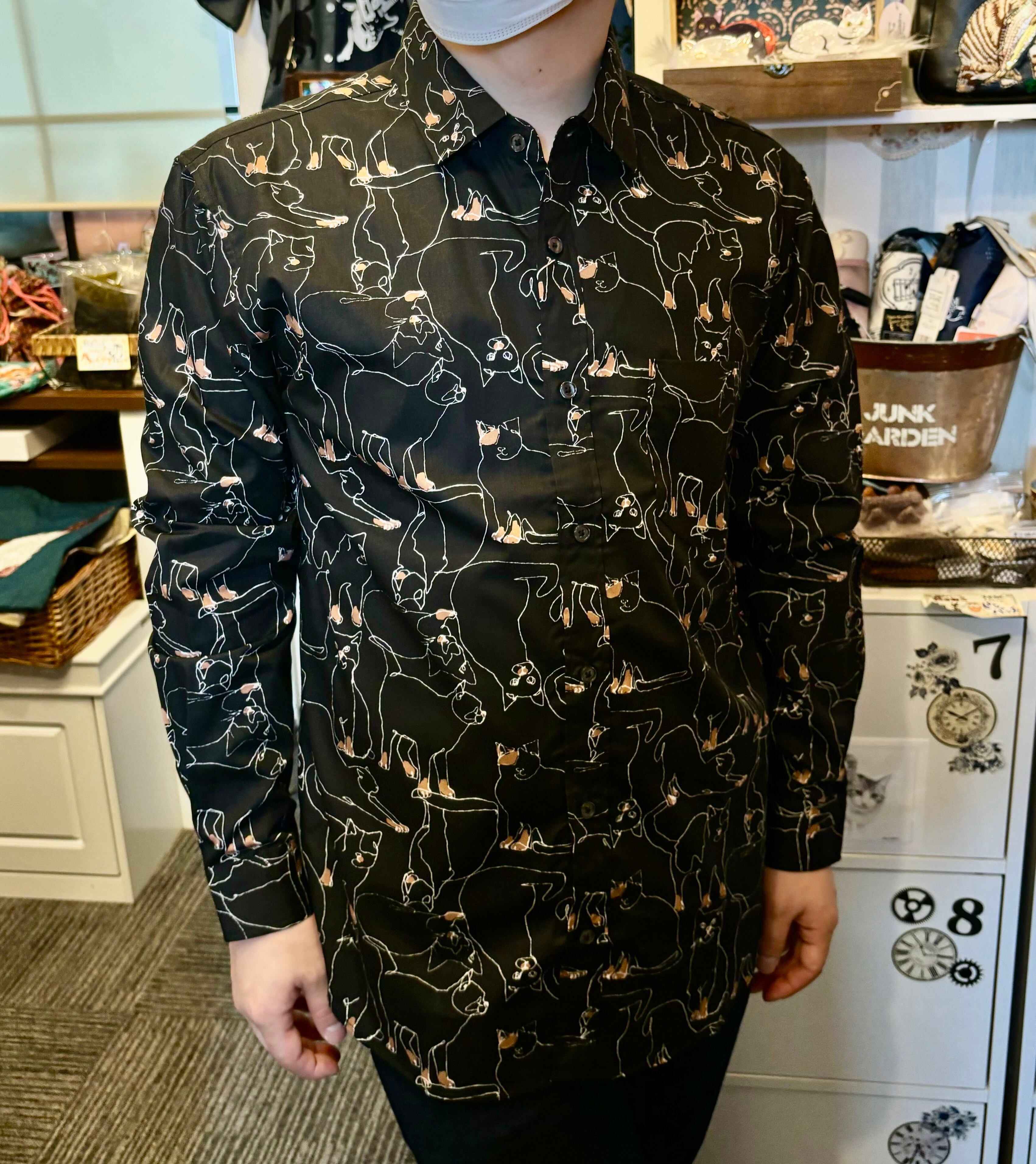 手書きタッチのカッコ可愛い猫モチーフのユニセックスのシャツ。