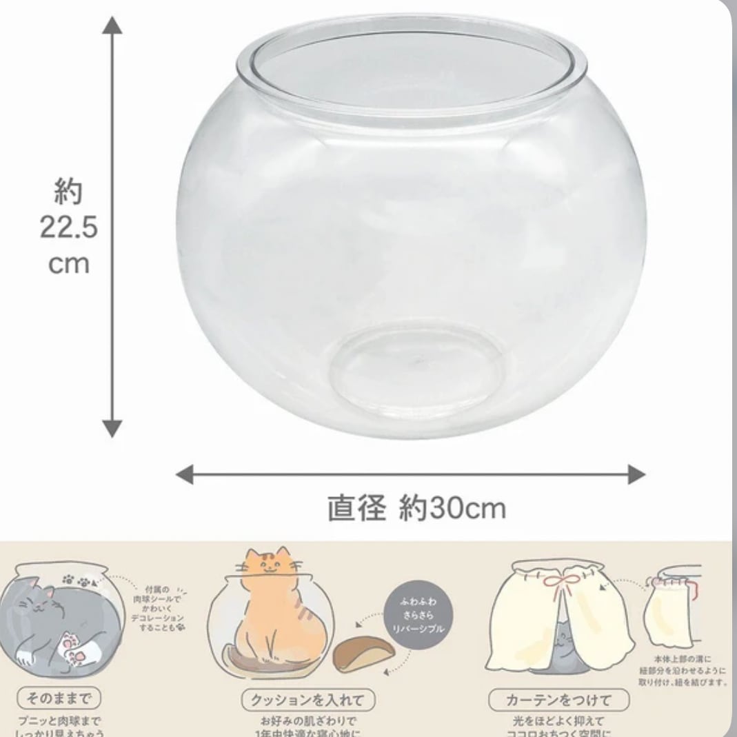 ・透明で可愛い姿が見えちゃう金魚鉢の猫ベッドです。