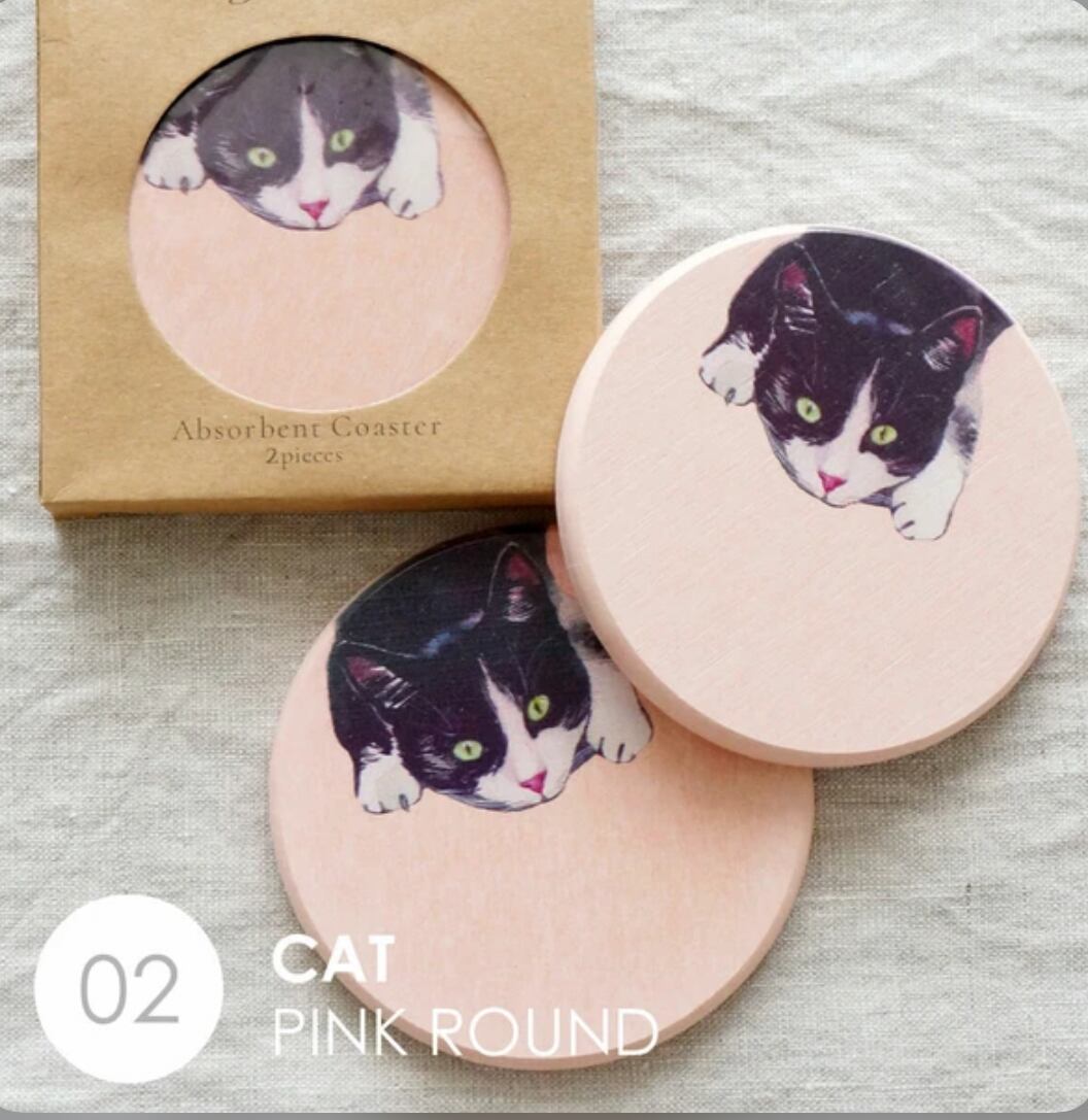 ネコのイラストがかわいい、 ジュビリー 珪藻土コースター同デザインBOX入り同柄2枚セット。。珪藻土特有のマットな質感と優しい雰囲気が、グラス・テーブルをナチュラルにドレスアップしてくれるアイテムです。