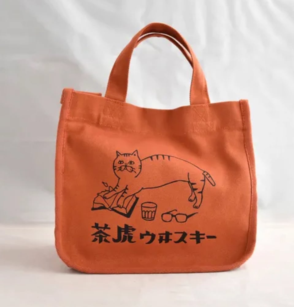 しっかりとした生成りのキャンバス地に猫印ミルクのロゴを施しました。「机上のジェントルマン」のメッセージと原稿用紙、万年筆の絵柄入り。