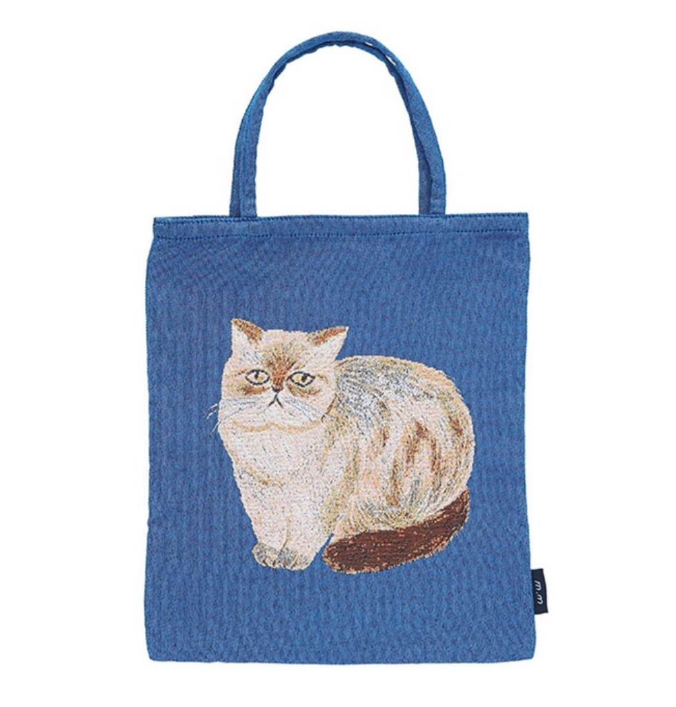 松尾ミユキさんが描くネコたちがデザインされたゴブラン織りのミニバッグです。