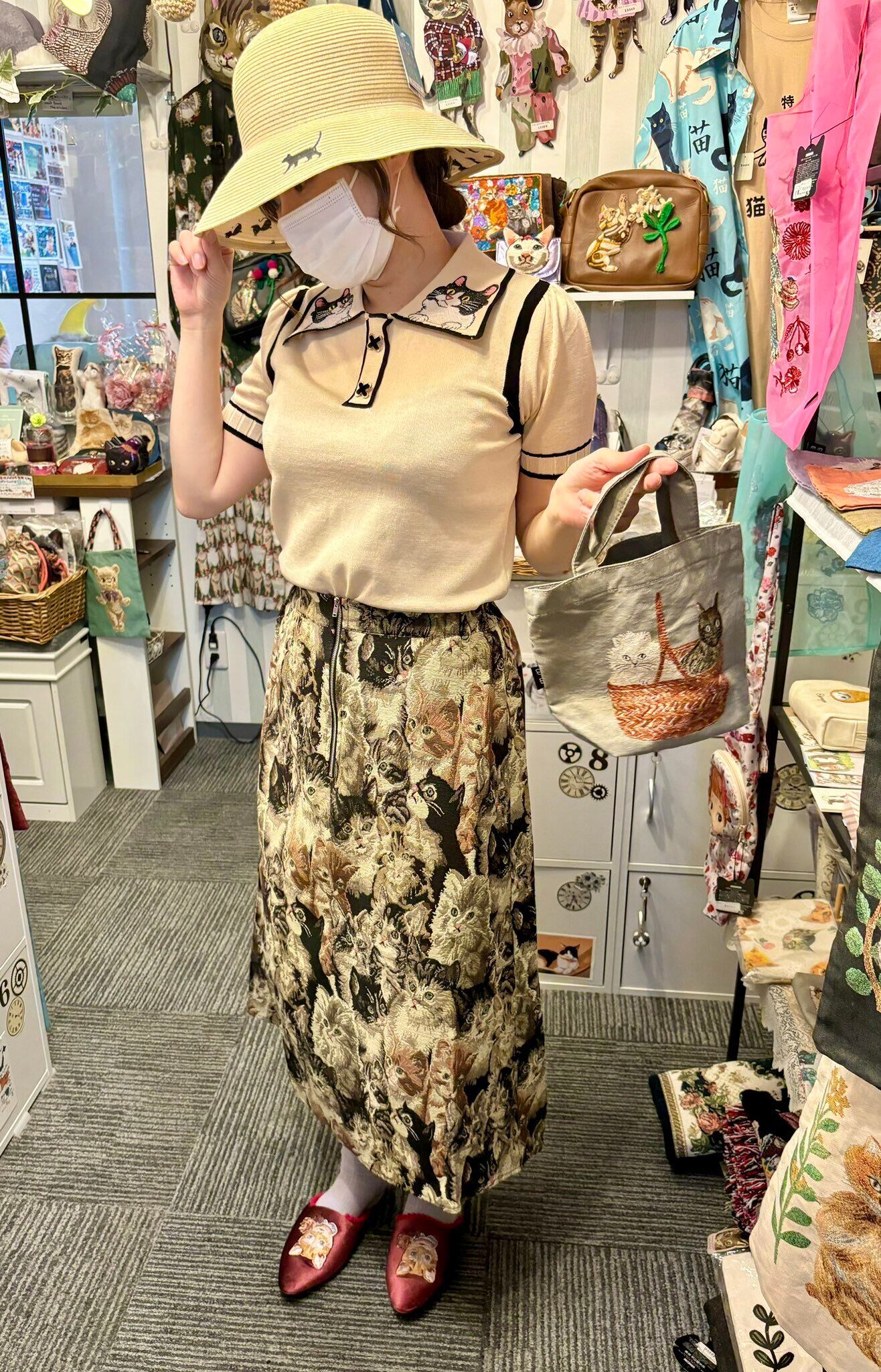 ゴブラン総柄フレアスカート ベージュ