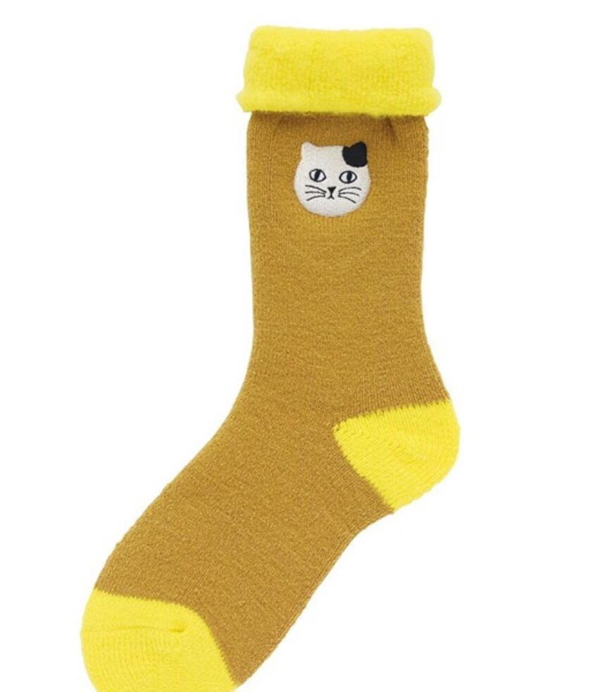 内側が起毛素材になっている、もこもこあったかいソックス。