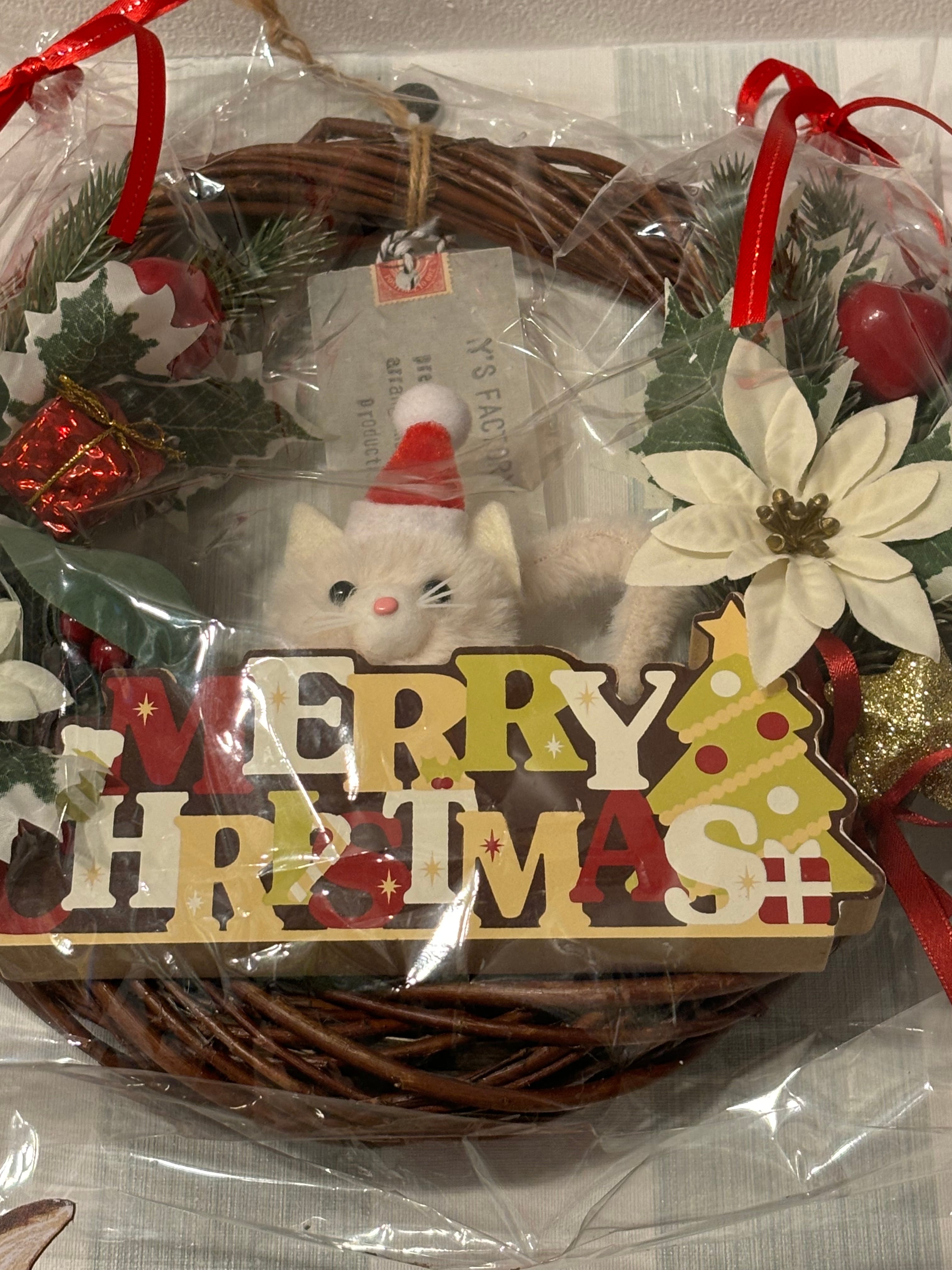 クリスマスプレゼント猫リース ワイズファクトリー