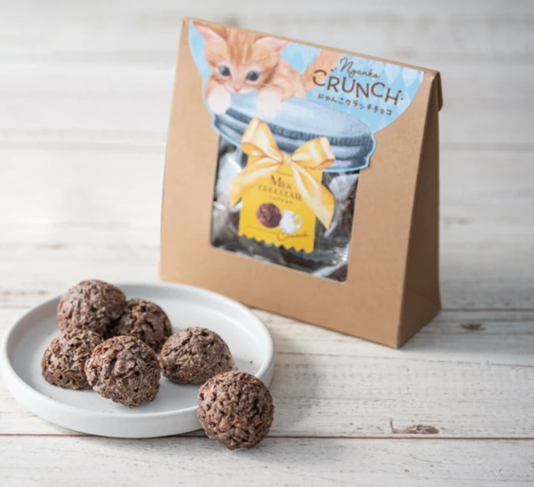 仔猫のとっておきのおやつは、ザクザク食感のクランチチョコレート。味ごとにお気に入りの猫を見つけてプチプレゼントにお勧めです。