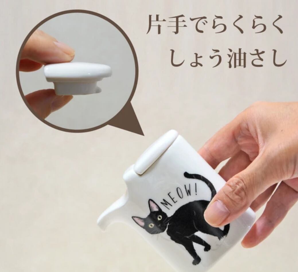 振り向きにゃんこがとっても愛らしいしょう油さしです。