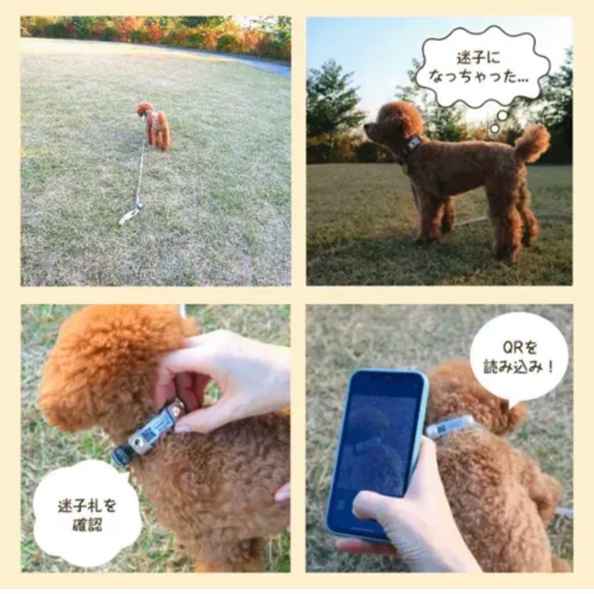 迷子札は着脱式で、お持ちの首輪やハーネスに巻いて簡単に取り付けができます。
